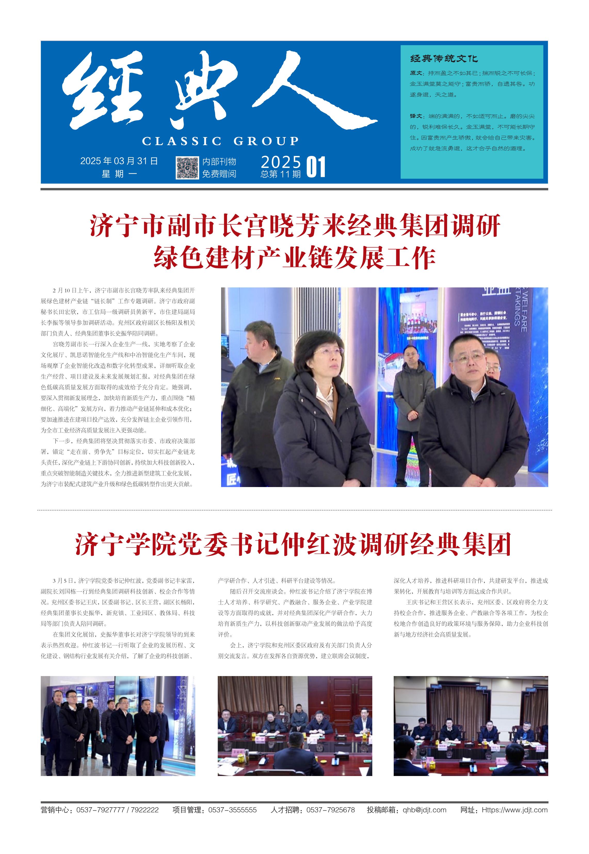 • 濟寧市副市長宮曉芳來經典集團調研綠色建材產業鏈發展工作