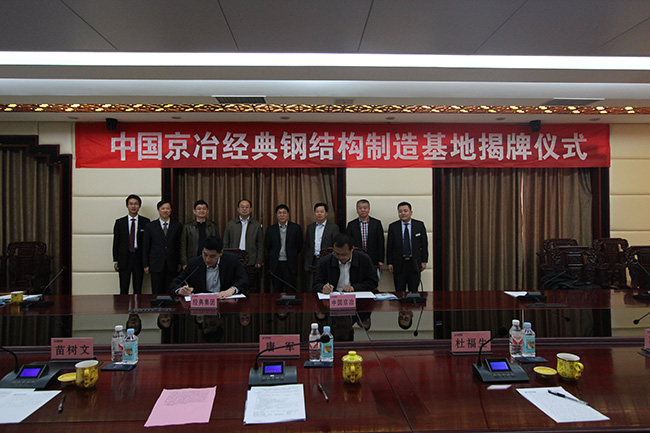揭牌儀式前,中國京冶鋼結(jié)構(gòu)事業(yè)部常務(wù)副總經(jīng)理常好誦和經(jīng)典集團(tuán)董事長(zhǎng)苗樹文在公司三樓會(huì)議中心共同簽訂了戰(zhàn)略合作框架協(xié)議。中國京冶與經(jīng)典集團(tuán)將本著平等、誠信、互惠、共贏的原則,利用各自優(yōu)勢(shì)在鋼結(jié)構(gòu)建筑領(lǐng)域建立長(zhǎng)期戰(zhàn)略合作伙伴關(guān)系,在高層、超高層鋼結(jié)構(gòu)建筑、大跨度鋼結(jié)構(gòu)建筑、鋼結(jié)構(gòu)住宅產(chǎn)業(yè)化、鋼結(jié)構(gòu)工程設(shè)計(jì)施工制造管理、節(jié)能環(huán)保維護(hù)系統(tǒng)等領(lǐng)域開展項(xiàng)目工程合作、科研與技術(shù)合作。