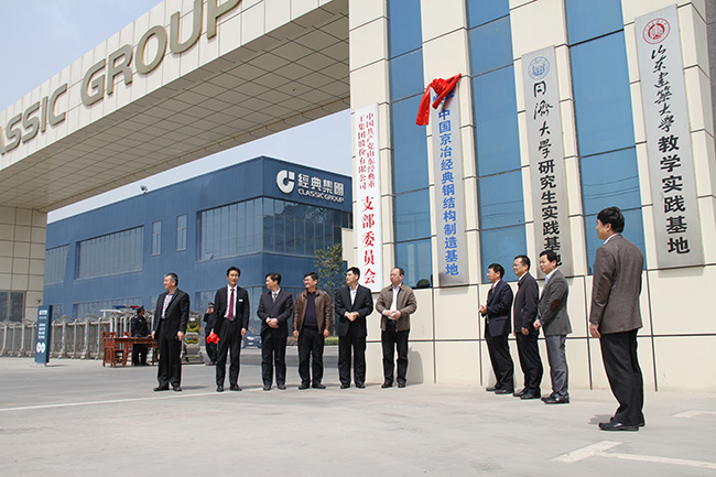 4月17日上午,經(jīng)典集團(tuán)舉辦中國京冶經(jīng)典鋼結(jié)構(gòu)制造基地揭牌儀式。中國鋼結(jié)構(gòu)協(xié)會(huì)秘書長(zhǎng)侯兆新,兗州區(qū)委常委、工業(yè)園區(qū)黨工委副書記、管委會(huì)副主任唐軍共同為基地揭牌。中國京冶工程技術(shù)有限公司鋼結(jié)構(gòu)事業(yè)部常務(wù)副總經(jīng)理常好誦,副總經(jīng)理桂宇飛,中國鋼結(jié)構(gòu)協(xié)會(huì)副秘書長(zhǎng)李寧,行業(yè)事務(wù)部部長(zhǎng)戴長(zhǎng)河,經(jīng)典集團(tuán)董事長(zhǎng)苗樹文,總經(jīng)理杜福生,生產(chǎn)總經(jīng)理王忠策,工會(huì)主席高建國,企劃部經(jīng)理史振華等參加了揭牌儀式。