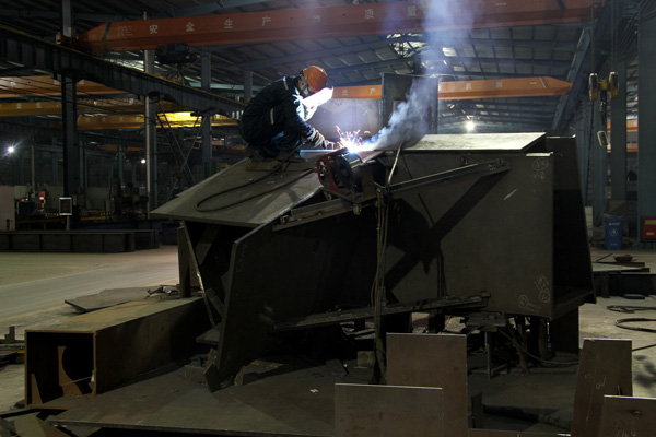 制作二部加班生產(chǎn)焊接鋼構(gòu)件