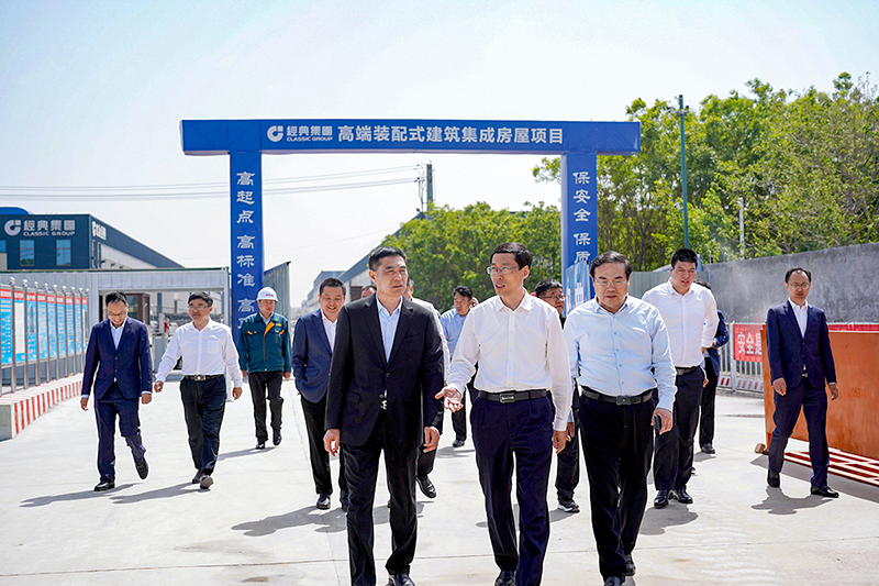 5月1日,濟寧市兗州區(qū)委副書記、區(qū)長王營一行到高端裝配式建筑集成房屋項目現場調研,指導省重大項目建設、安全生產等有關工作。兗州工業(yè)園區(qū)黨工委書記、管委會主任王智,經典集團董事會主席苗樹文,董事長史振華,區(qū)政府辦、發(fā)改局、新兗鎮(zhèn)主要負責人等陪同調研。
