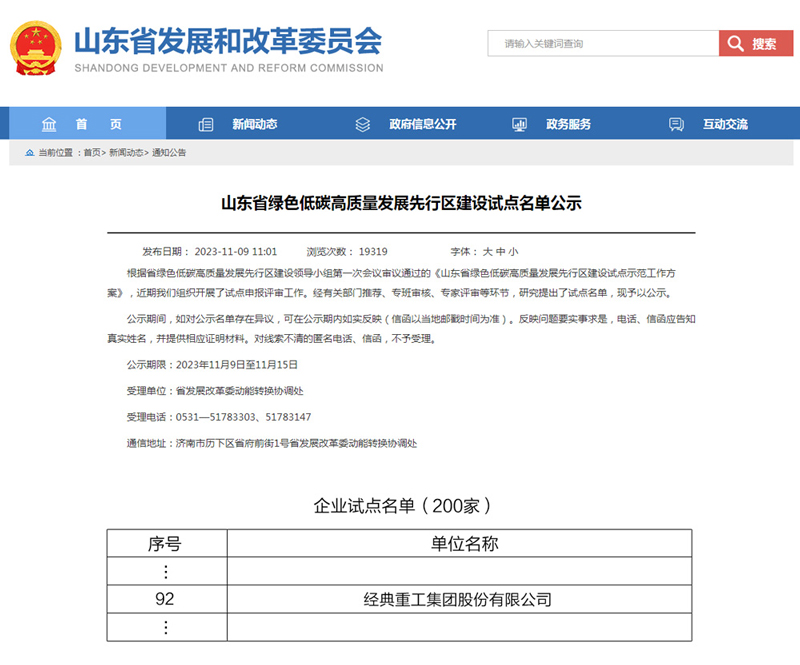 近日,山東省發(fā)展和改革委員會公示了山東省綠色低碳高質(zhì)量發(fā)展先行區(qū)建設(shè)試點名單,經(jīng)典集團上榜企業(yè)試點名單。