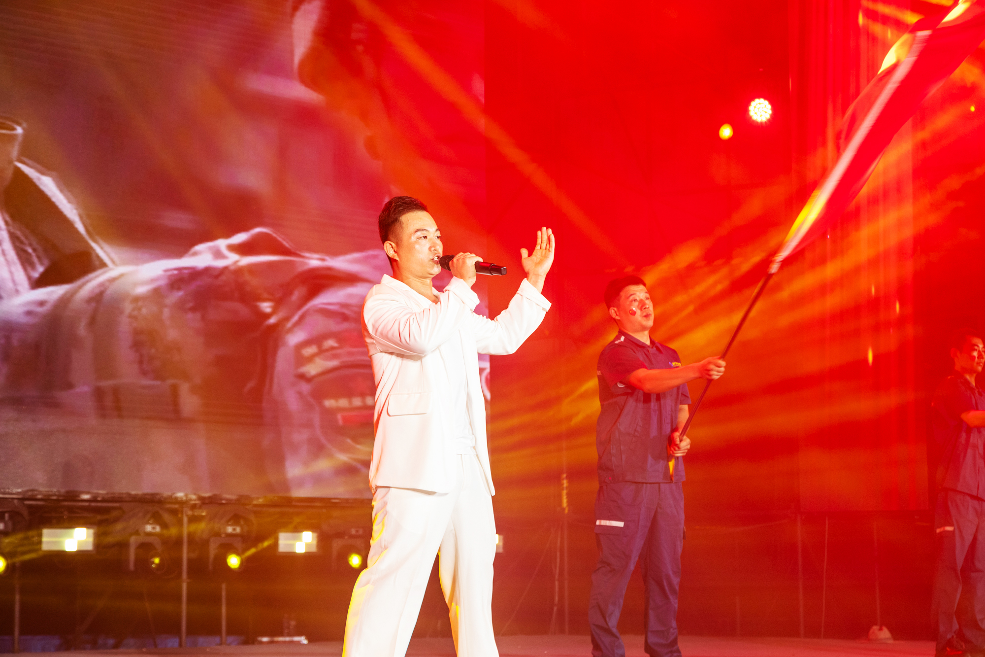 演出在舞蹈《盛世歡歌》的歡快熱烈節奏中激情開場,舞者們以優美的舞姿瞬間點燃了現場的熱情。隨后,經典集團董事會主席苗樹文發表了熱情洋溢的致辭,對前來參會的領導及嘉賓表示了最誠摯的歡迎和衷心的感謝。接著,歌曲《我們的時光》《包容》《諾言》《紅日》《故鄉》、舞蹈《眉飛色舞》、戲曲《變臉》《穆桂英掛帥》、架子鼓樂器表演《逆戰》等20個節目輪番上演,形式多樣,精彩紛呈,現場掌聲雷動,歡笑聲此起彼伏。晚會中穿插的抽獎環節,將現場氛圍推向了高潮。最后,晚會在合唱《歌唱祖國》中徐徐落下帷幕,集團領導上臺與演職人員合影留念。